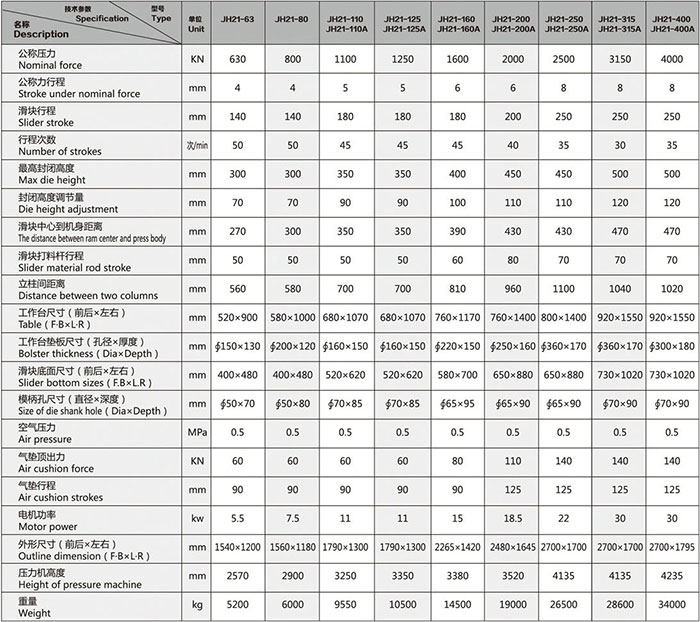 JH21系列開式固定臺壓力機